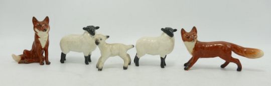 Beswick Small Standing Fox, Small Seated Fox, Two Black Faced Lambs & similar(5)