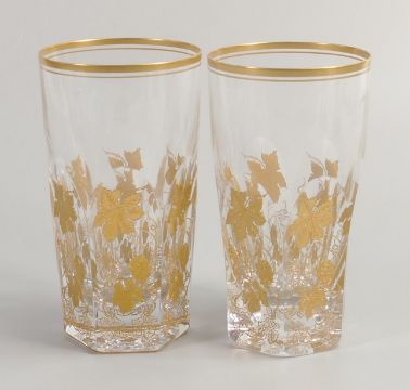 De Lamerie Fine Bone China heavily gilded Glass Crystal Tumblers , specially made high end quality item, Made in England, height 13.5cm(2)