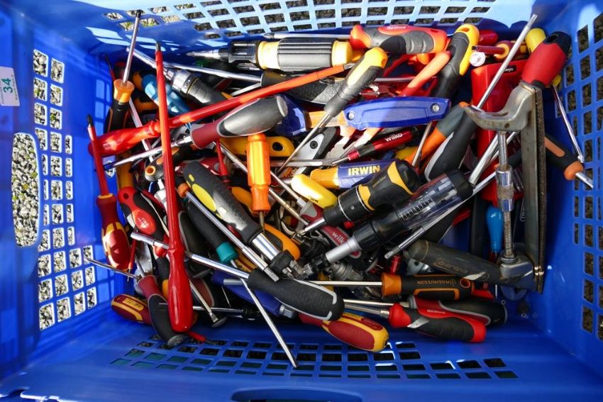 A collection of mainly unused hand tools including screwdrivers, spanners, pliers, etc (1 tray)