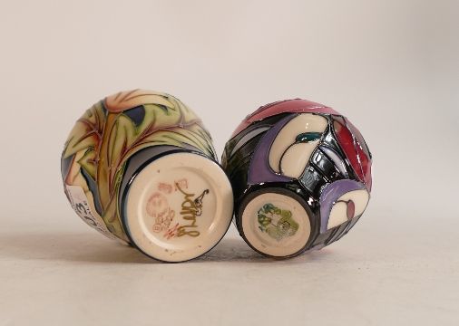 Moorcroft Bellahouston Vase 11cm high, together with Ode to May vase, 11cm high (2)