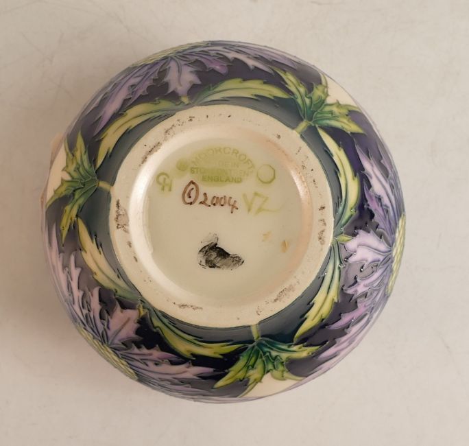 Moorcroft Caledonian Thistle vase, designed by Carole Lovatt, dated 2004, height 12cm