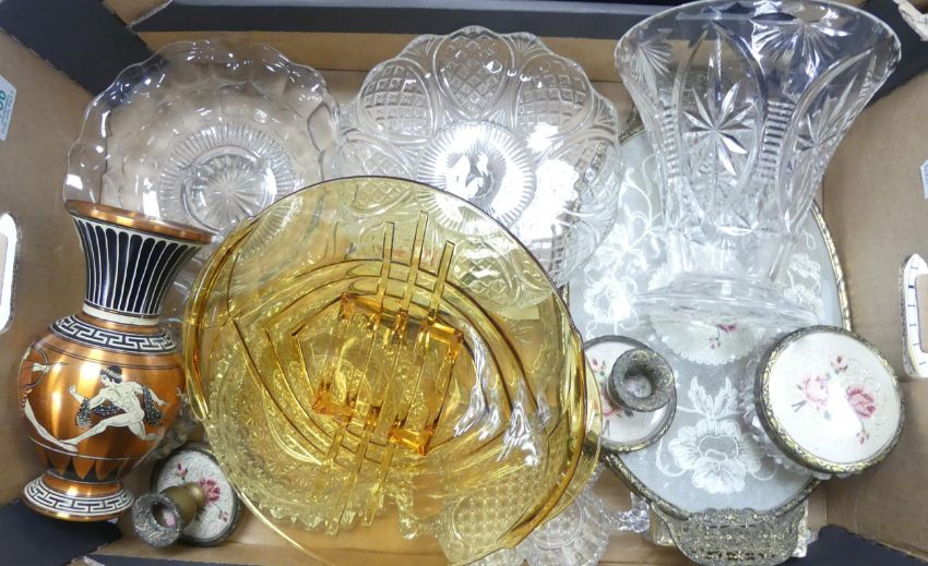 A Mixed Collection of Glassware to include Vases, Vanity, Lidded Box, Footed Bowl etc. (1 Tray)