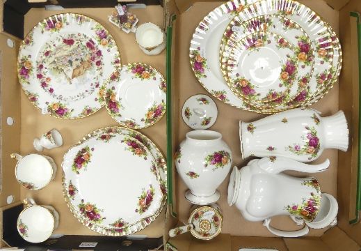 Royal Albert Old Country Roses Pattern Items to include Coffee Pot, Vases, Platter, Bread and Butter Plate, Teacups and Saucers etc. (2 Trays)