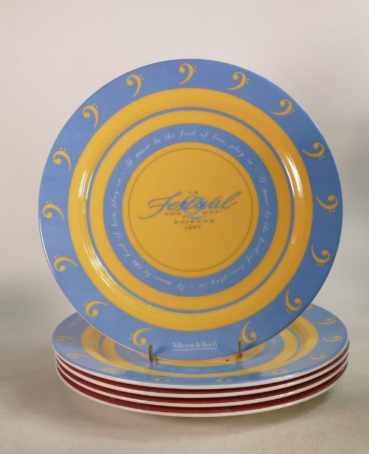 Villeroy & Boch Le Festival Auxquat plates , years 1996 x3 and 1997 x2. Diameter 29cm