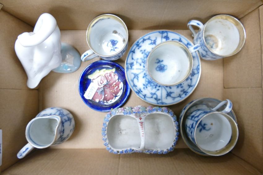 Small group of collectables including Moorcroft dish, Lladro goose, German 19th century Dresden type coffee cups & saucers, cream jug & sugar bowl etc.