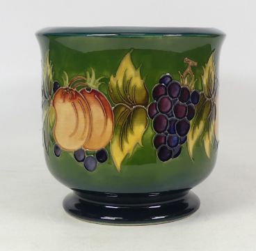 Moorcroft Planter Fruit And Vine Design on Green Ground: By Marjorie Kubanda. Limited Edition 380 Of 500, Height 17cm (Slight Crazing Noted on Base)