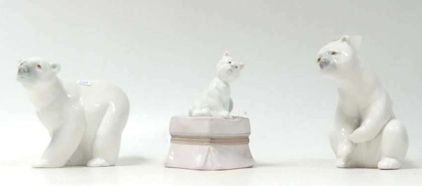 Lladro Figures to include Sitting Polar Bear 1208, Standing Polar Bear 1207, West Highland Terrier sitting (3)