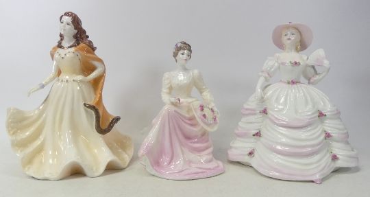 Coalport lady figurines to include Vivien, Lady in Lace, Southern belle Tallest 22cm (3)