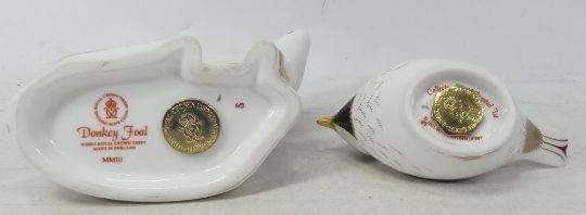 Royal Crown Derby Paperweights to include Donkey Foal, Crested Tit both with gold stoppers (boxed)(2).